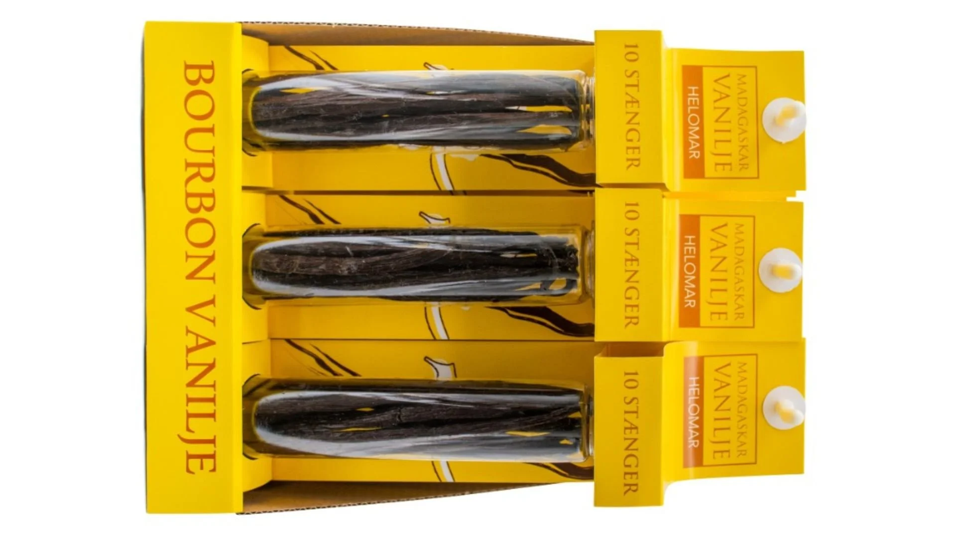 VA22 Private Label Vanilla Tube Format: Shelf-ready vanilla pod tube solution for branded premium retail presentation.